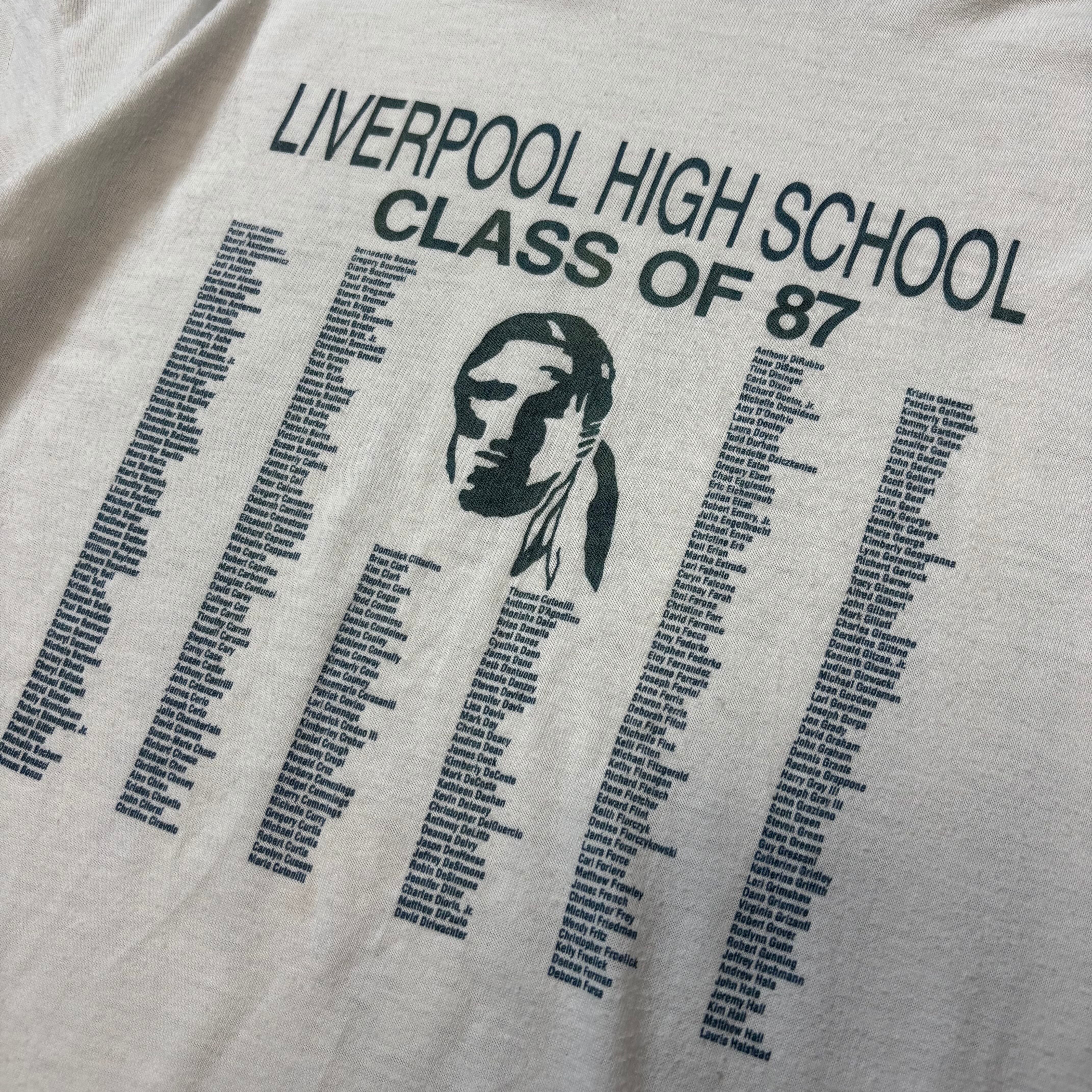 1987s "LIVERPOOL HIGH SCHOOL" S/S T-shirt / 1987年 半袖 ホワイト Tシャツ アメリカ製 クラスT