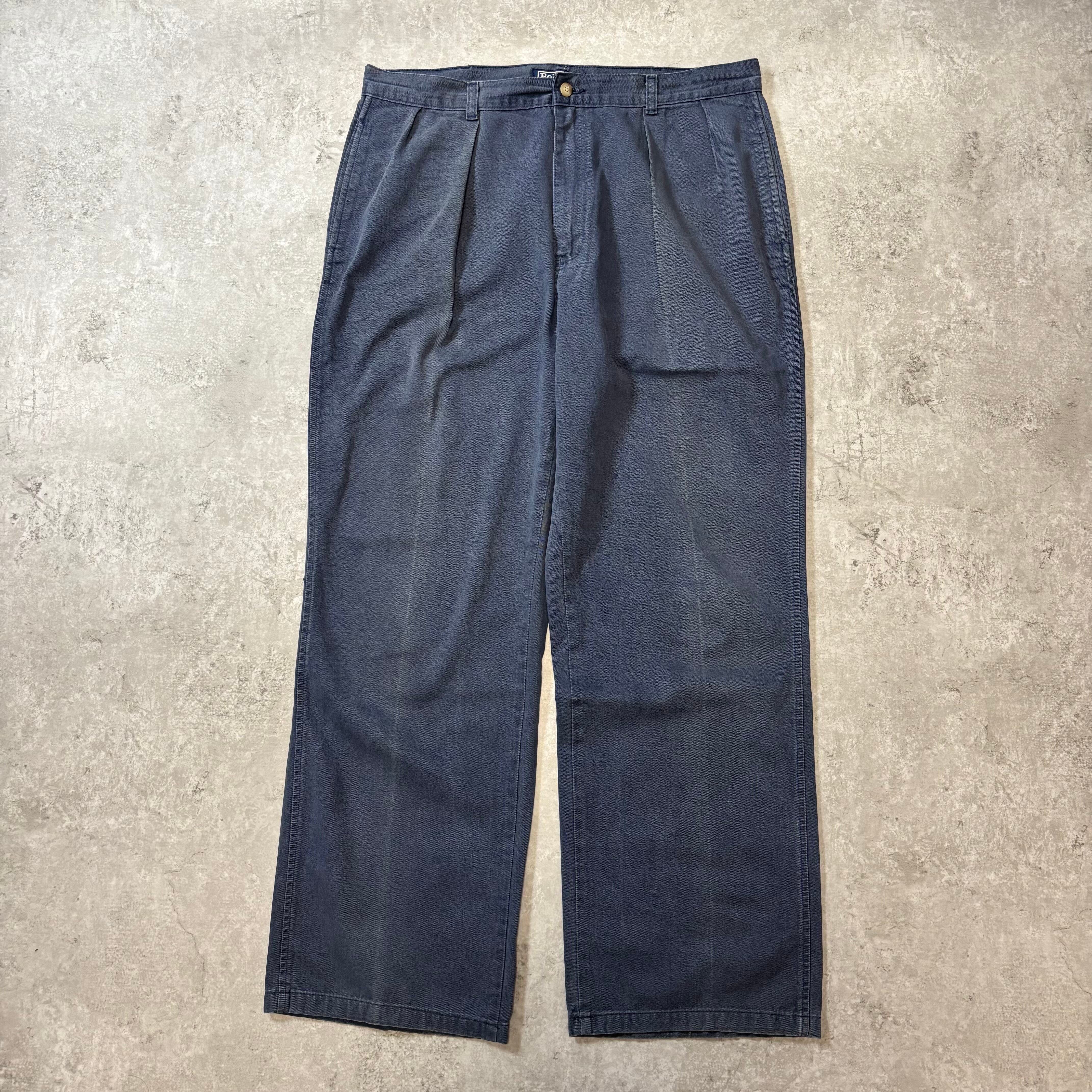 1980s "Polo Ralph Lauren" 2tuck Chino Pants "42TALON" "Good Fade!!" / 1980年代 ラルフローレン 2タック フェード ポロチノ ネイビー 42タロン