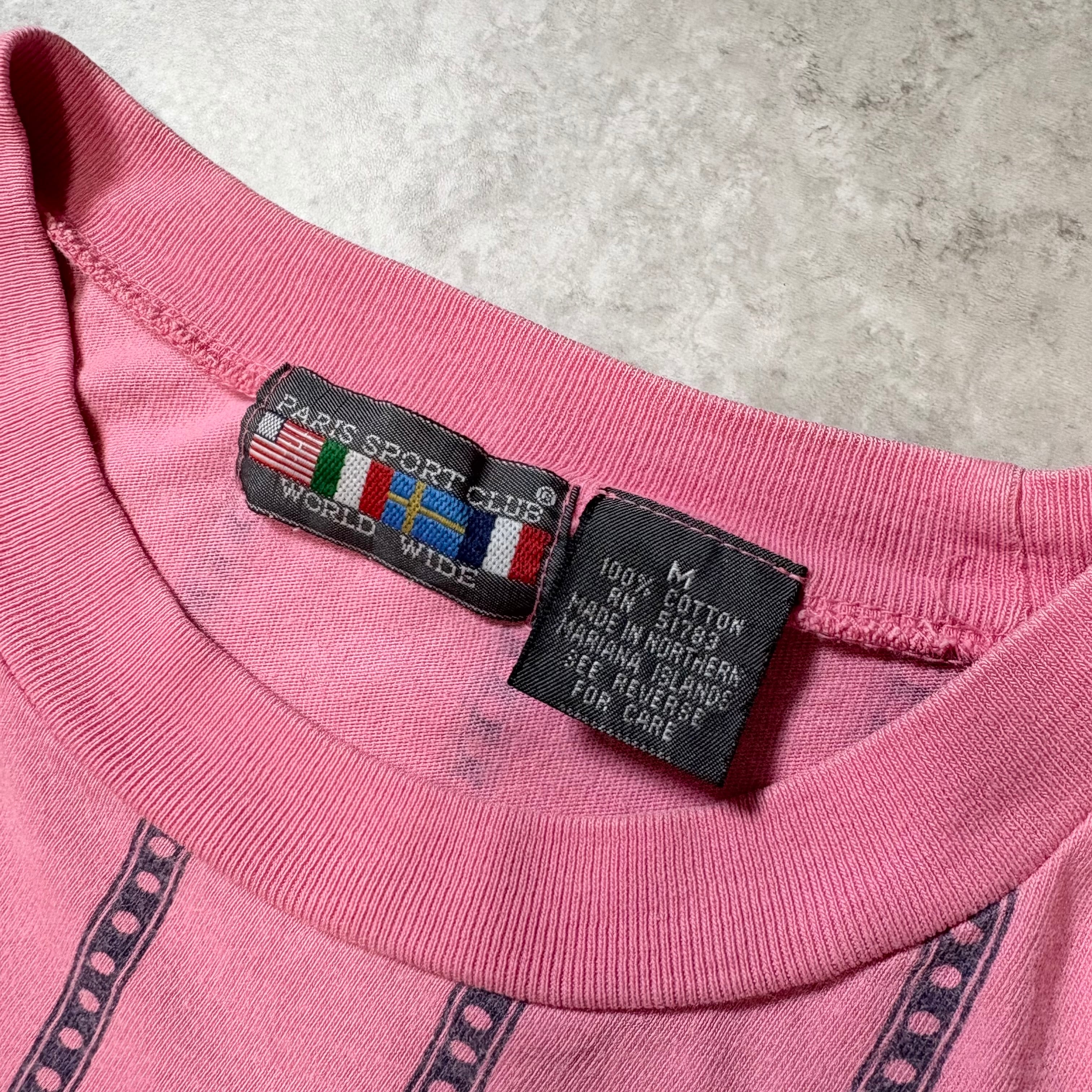 1990s "PARIS SPORT CLUB" S/S T-shirt "Pink×Black"