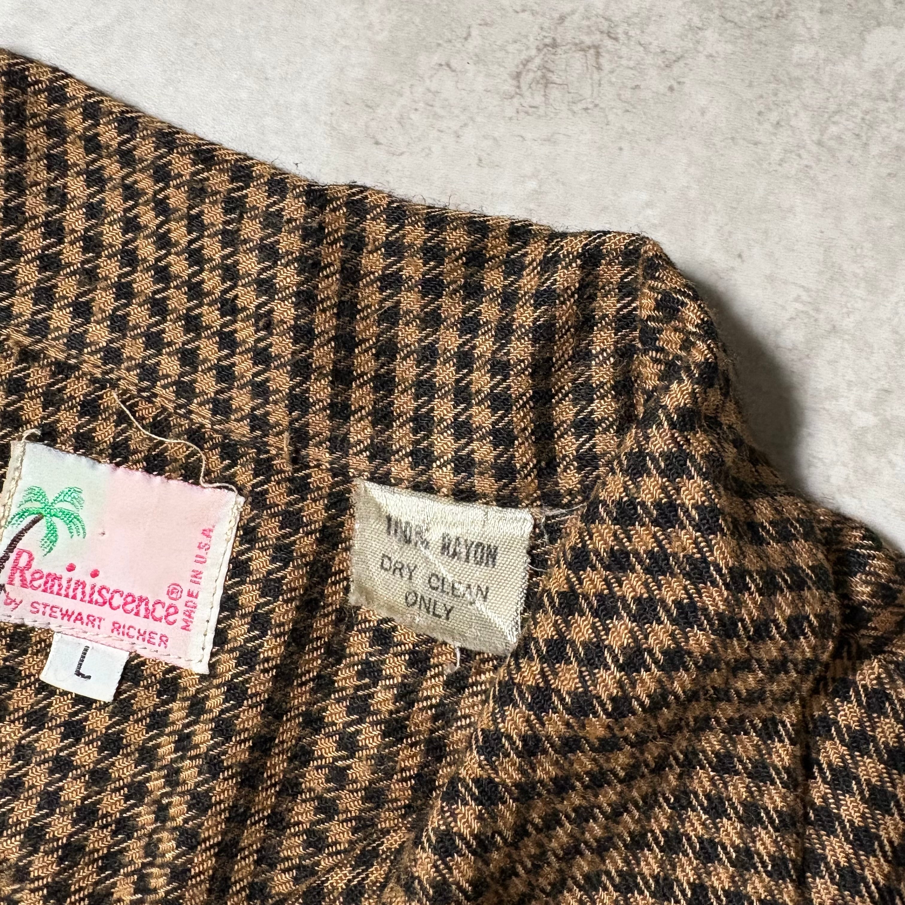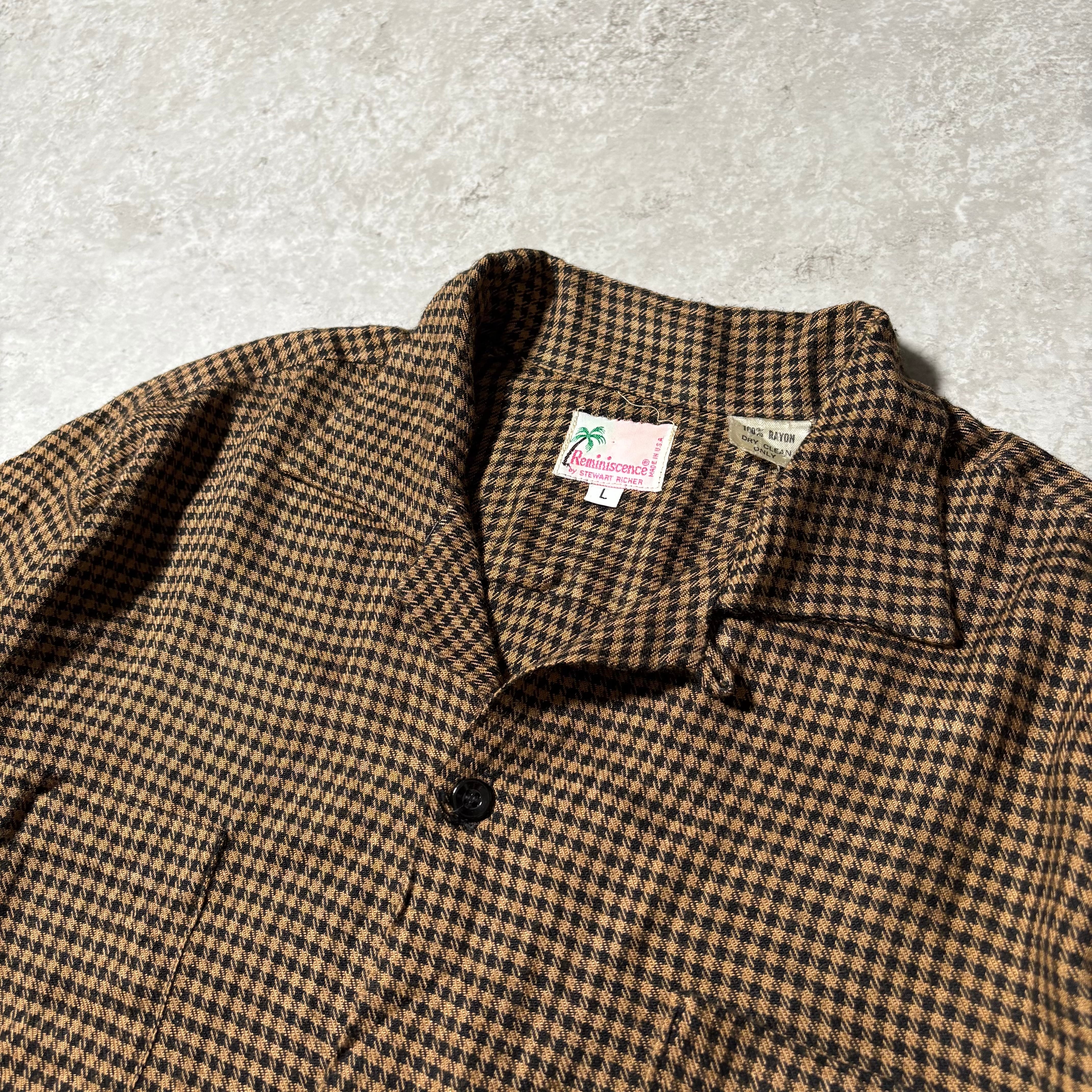 70s~80s ガンクラブチェックのオープンカラーレーヨンシャツです。