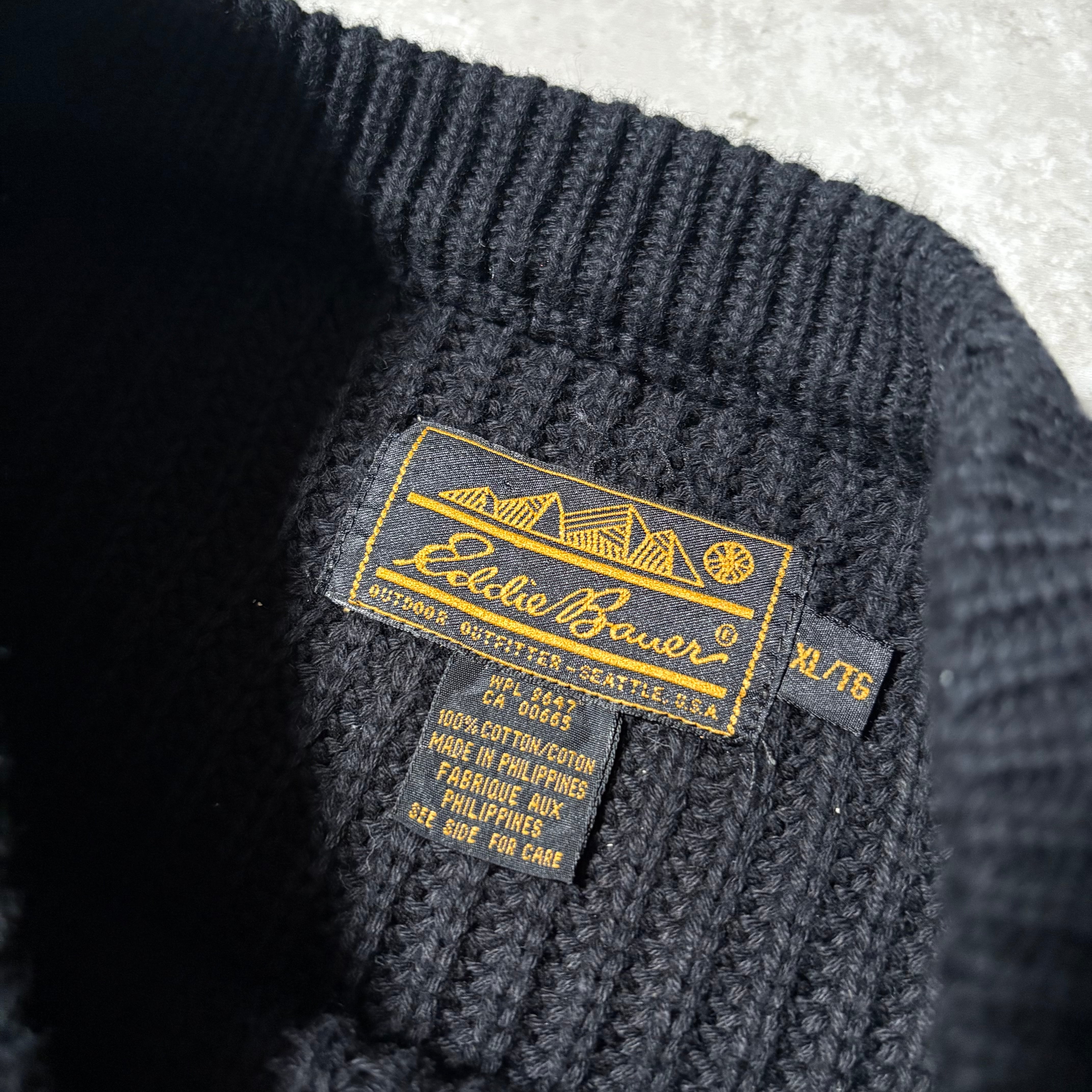 90s黒タグがつくEddie Bauerのブラックコットンニットです。