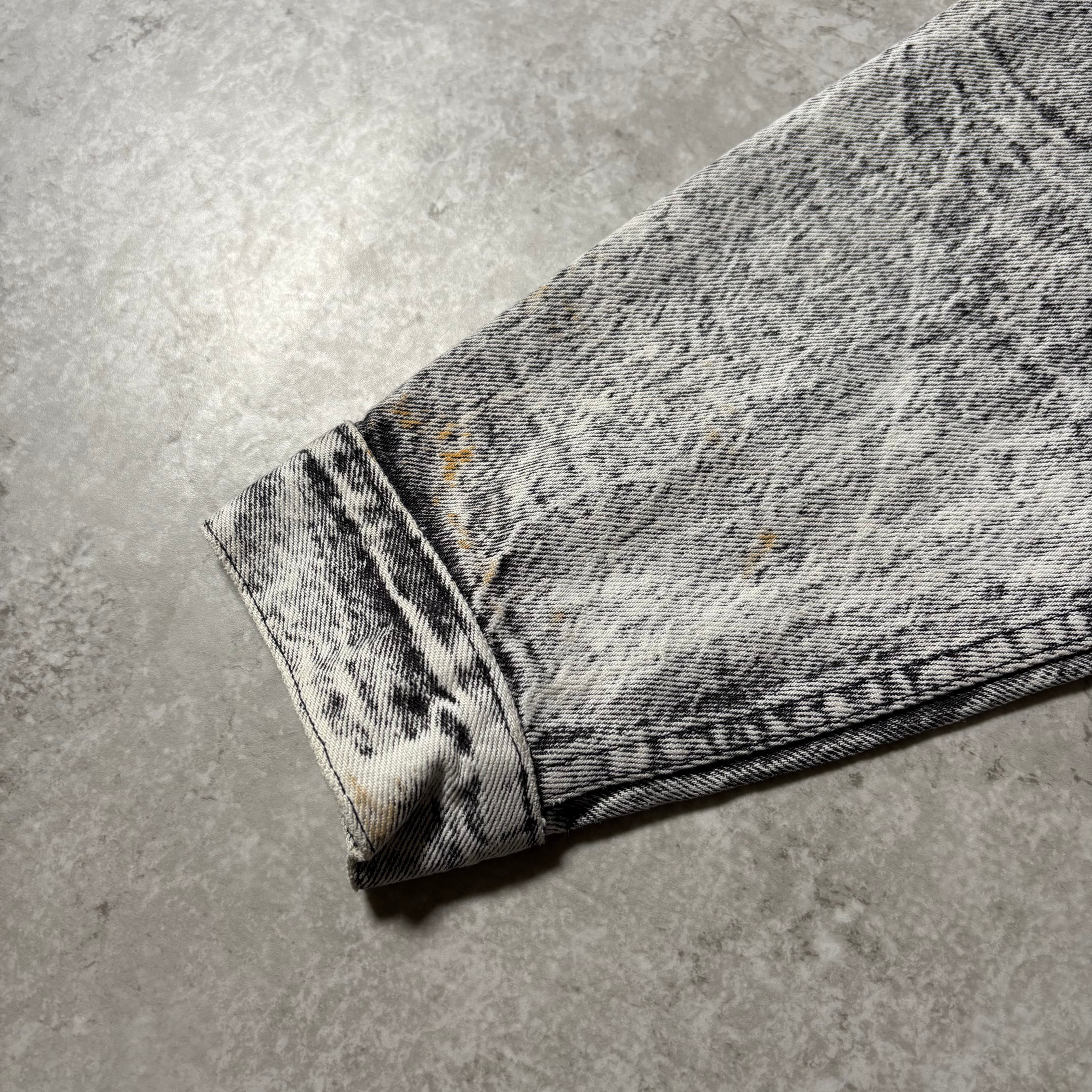 ホワイト×ブラックのケミカルウォッシュカラーで、非常に雰囲気溢れる1着。