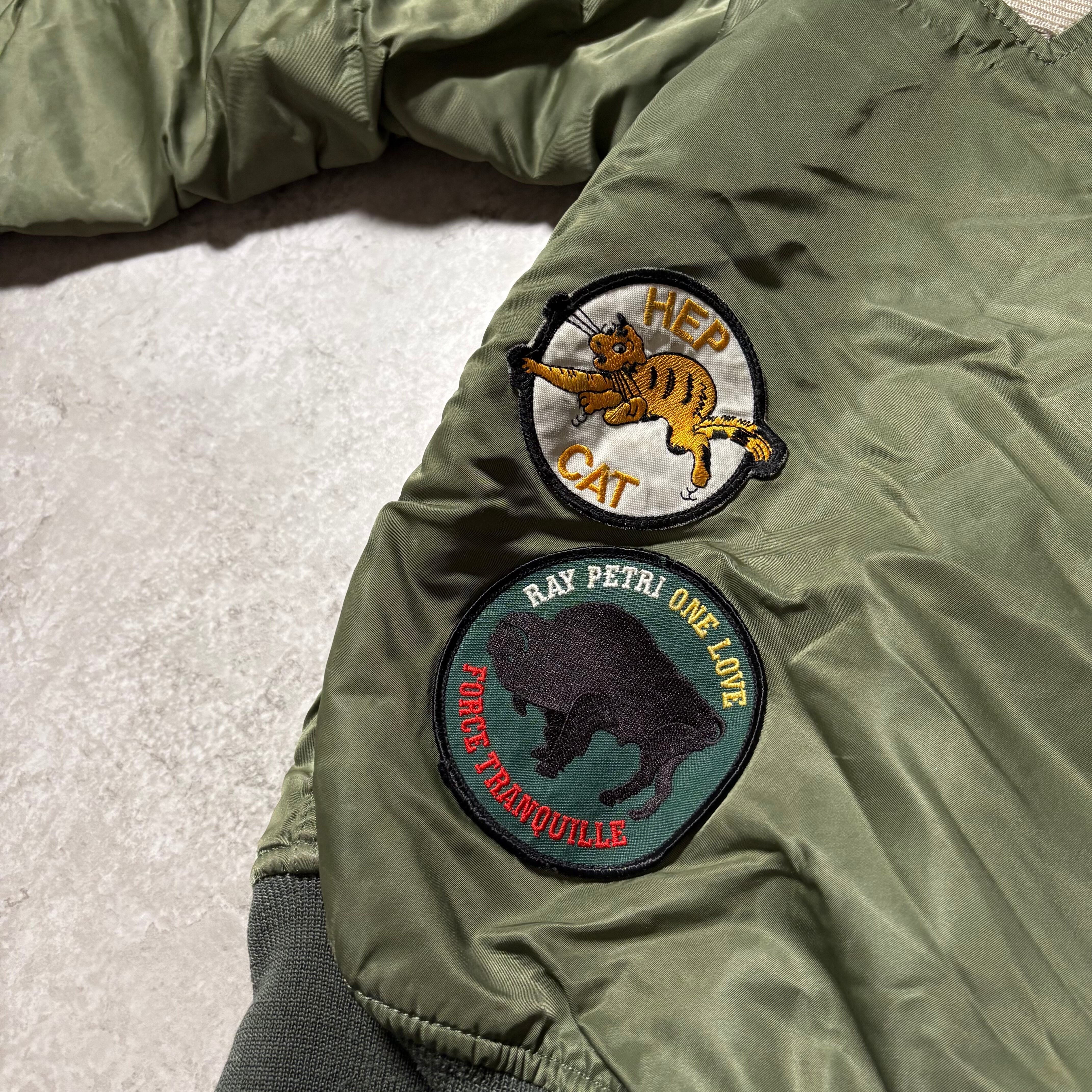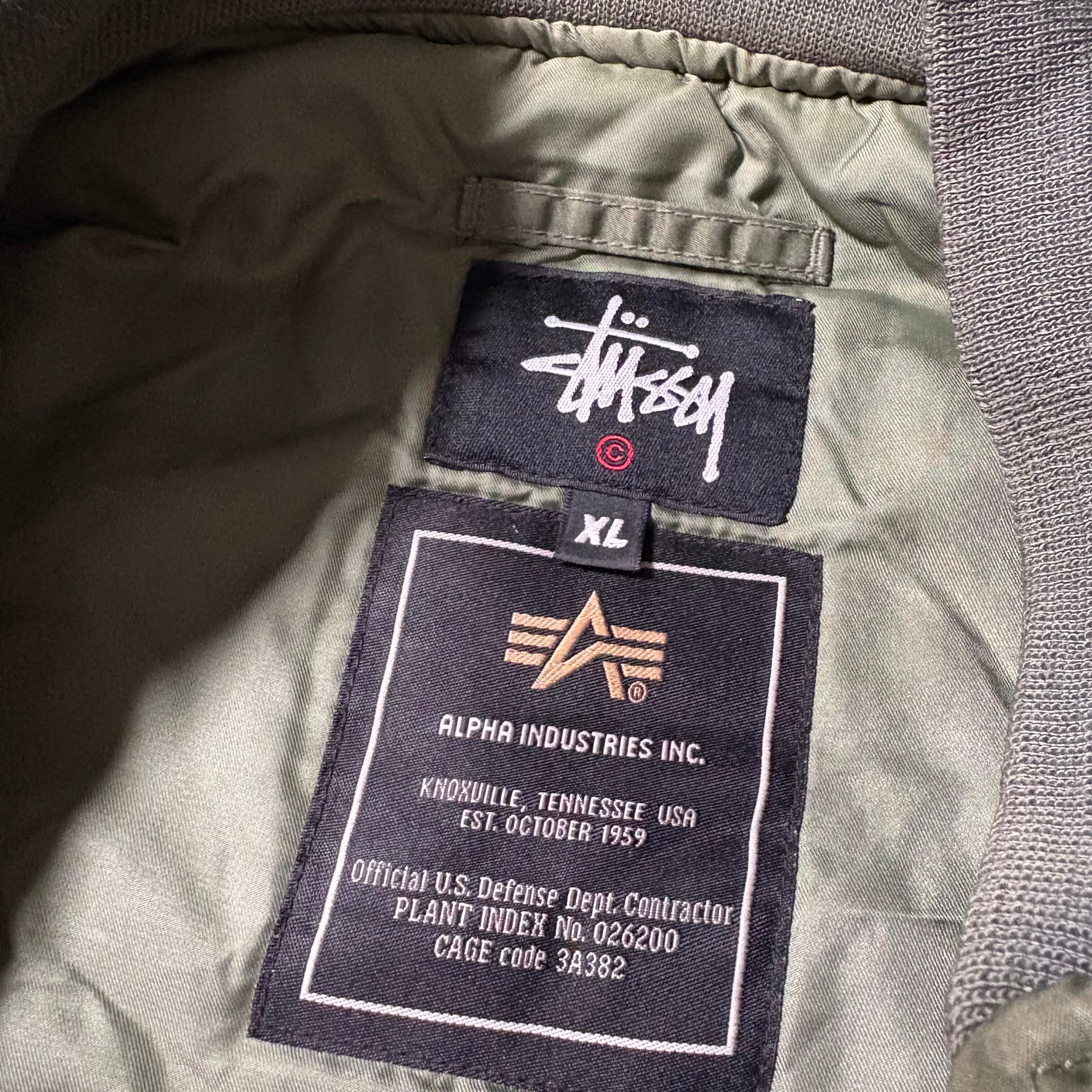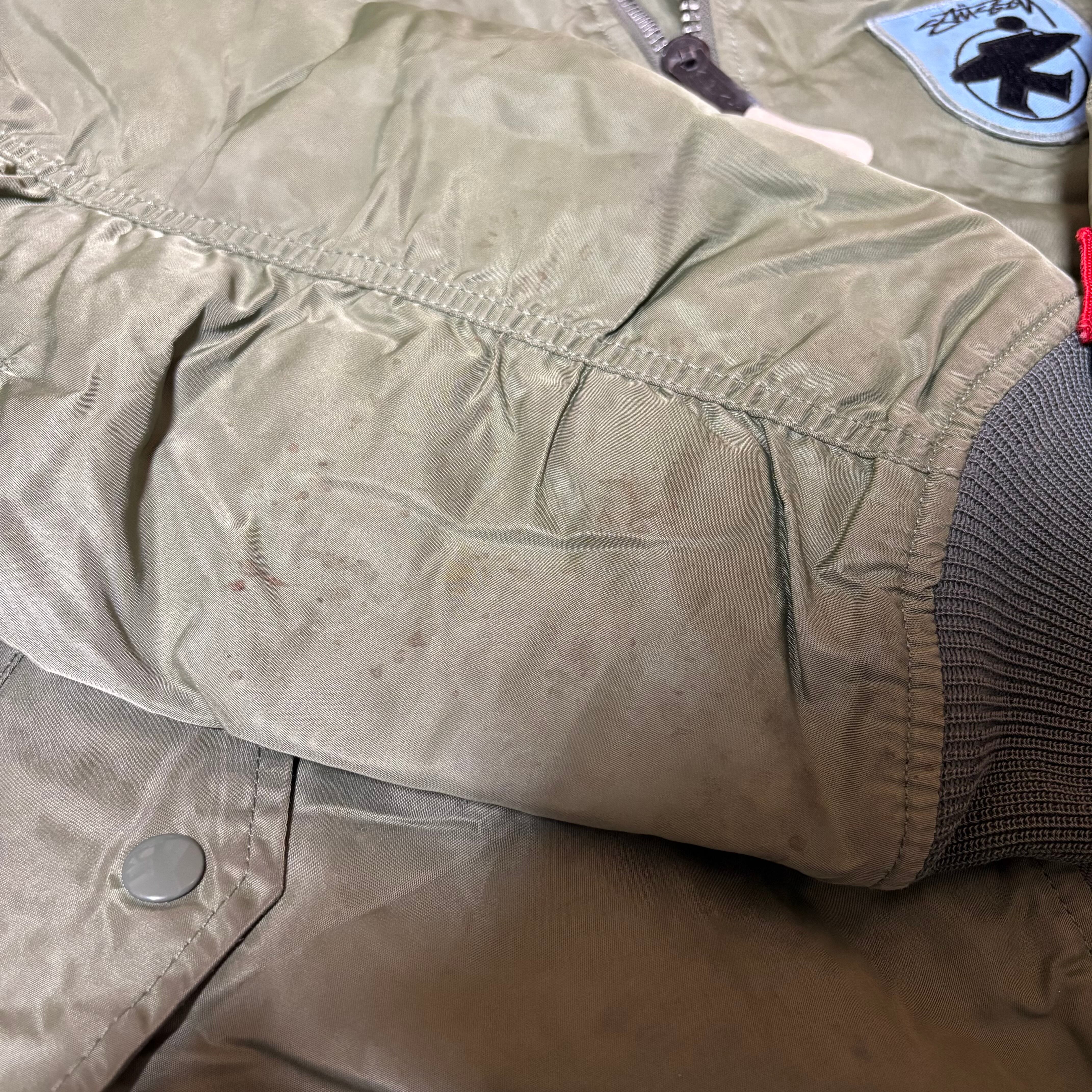 00s ステューシーのアルファのダブルネームのMA-1です。