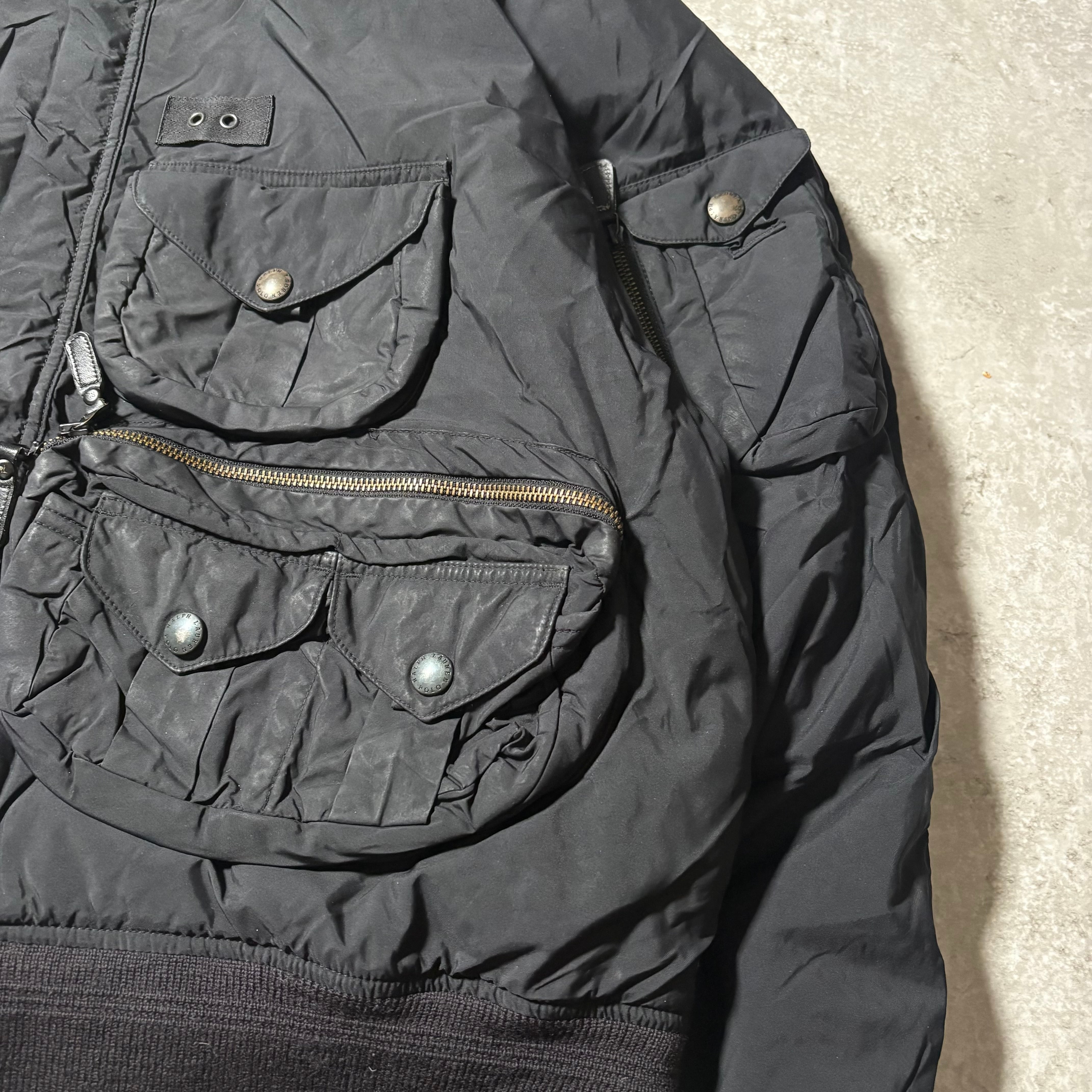 N-2B フライトジャケットをベースに複数のポケットを取り付けたラルフのダウンのトップピースの1つ。