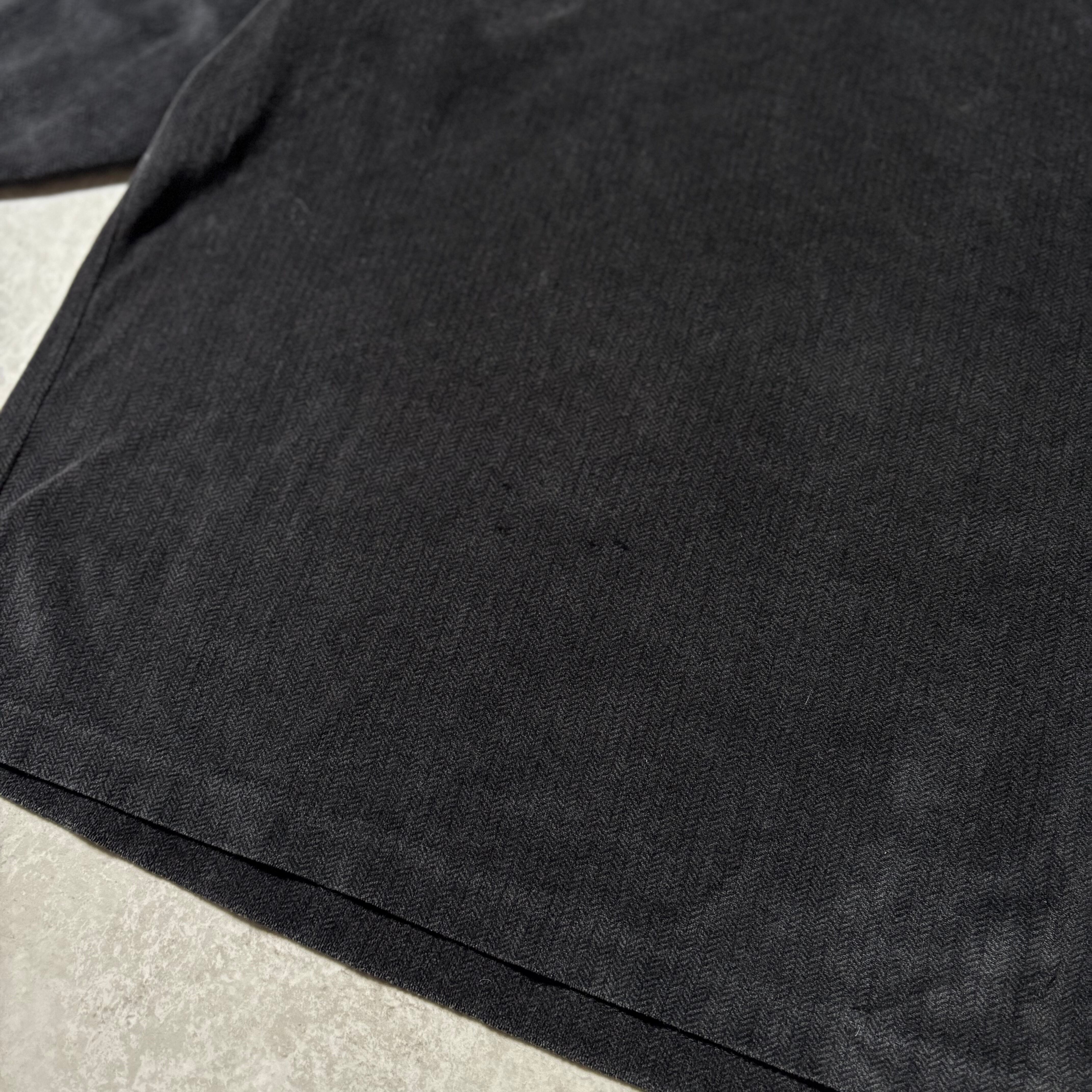 ヘリンボーン模様の入ったベロア素材でブラック。古着好きにかなり刺さる1着かと◎