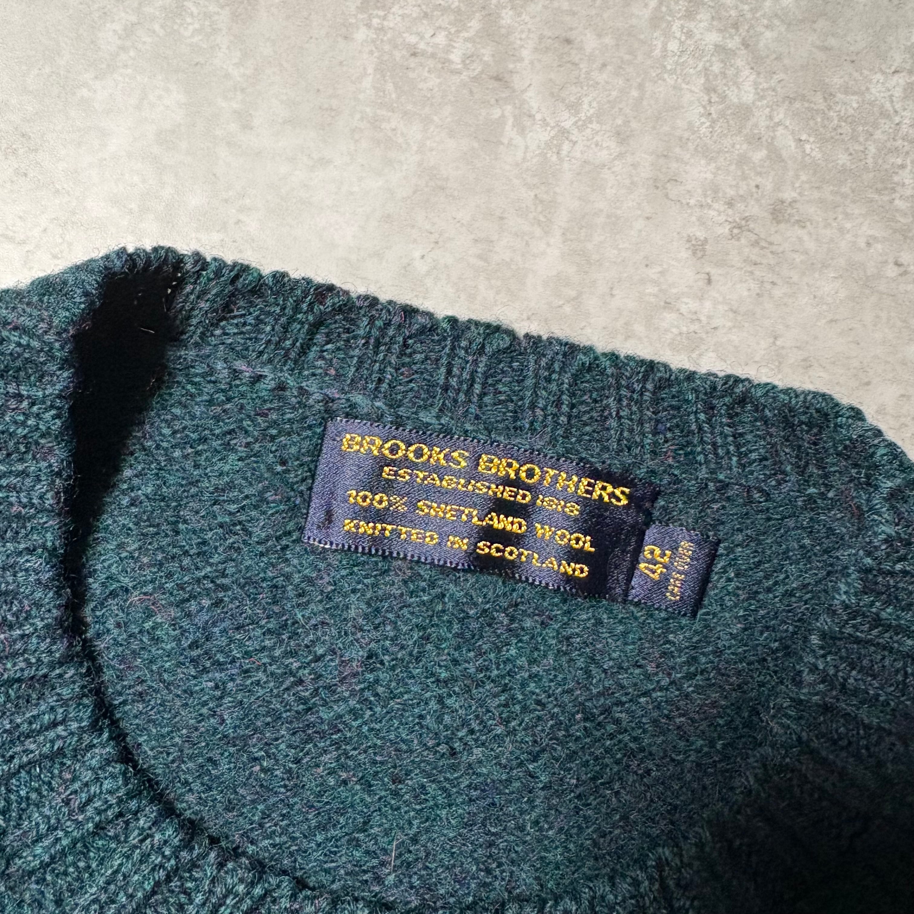 1980〜90年代頃のブルックスブラザーズによるニット。スコットランド製のウールニットで、端正なクルーネック仕様の一着です。