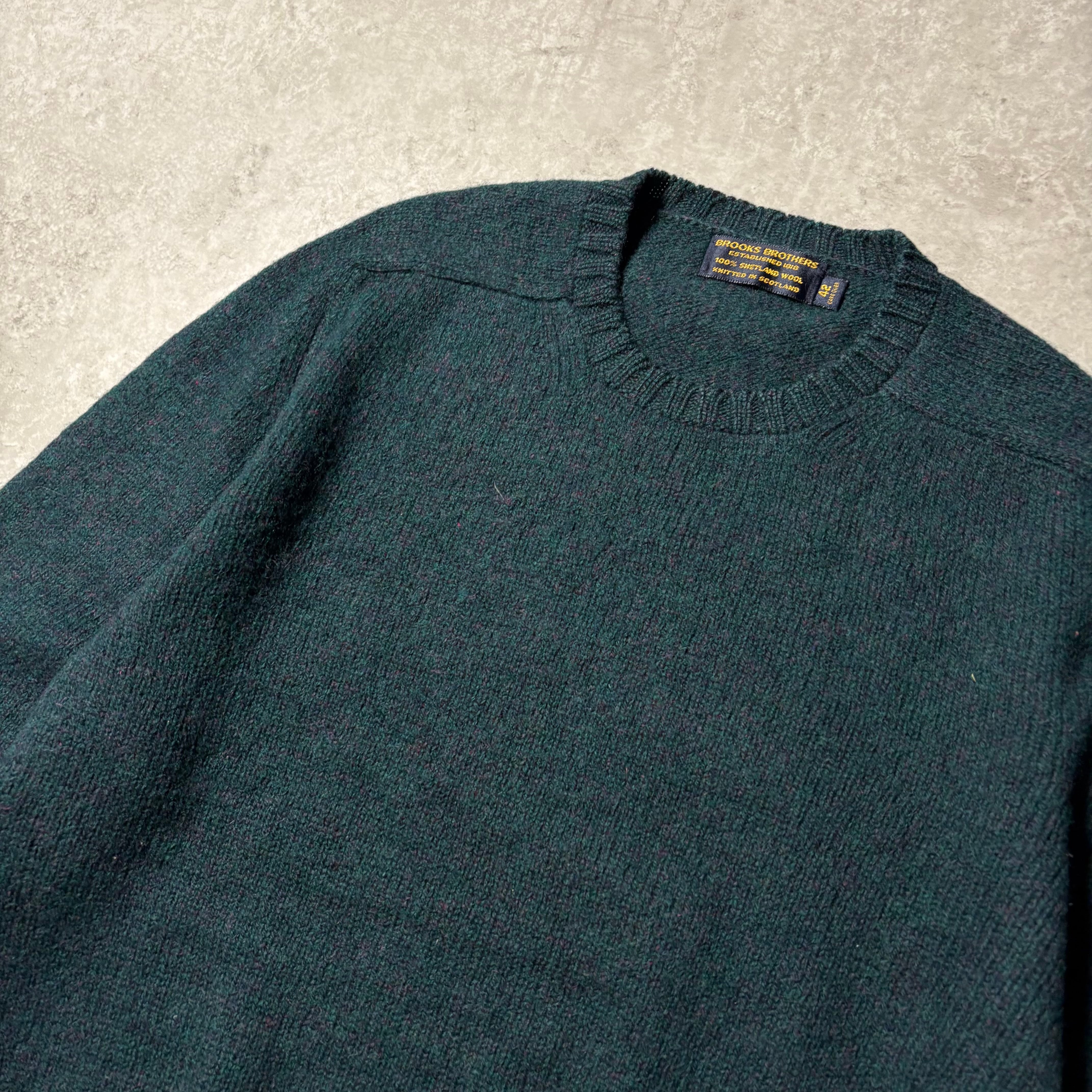 ブルックスブラザーズが定番的に展開していたスコットランド製ニットは、素材と編みの質を重視したものが多く、この個体もその流れを汲む仕上がり。量産感のない、落ち着いた佇まいが印象的です。