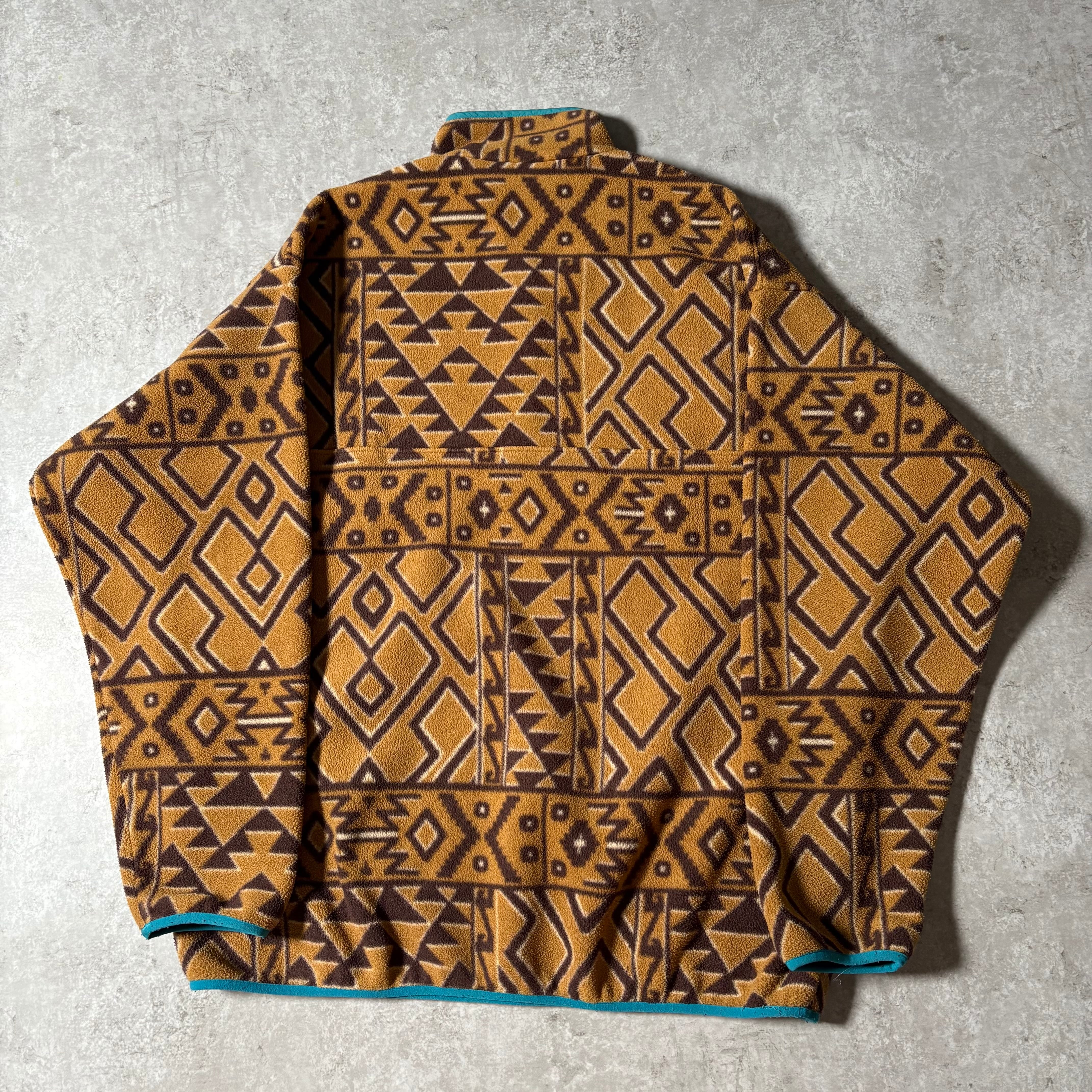 フリース素材特有の軽さと保温性を備えつつ、スナップTらしいプルオーバー構造。胸ポケットや配色に、当時のパタゴニアらしい機能美が見られます。