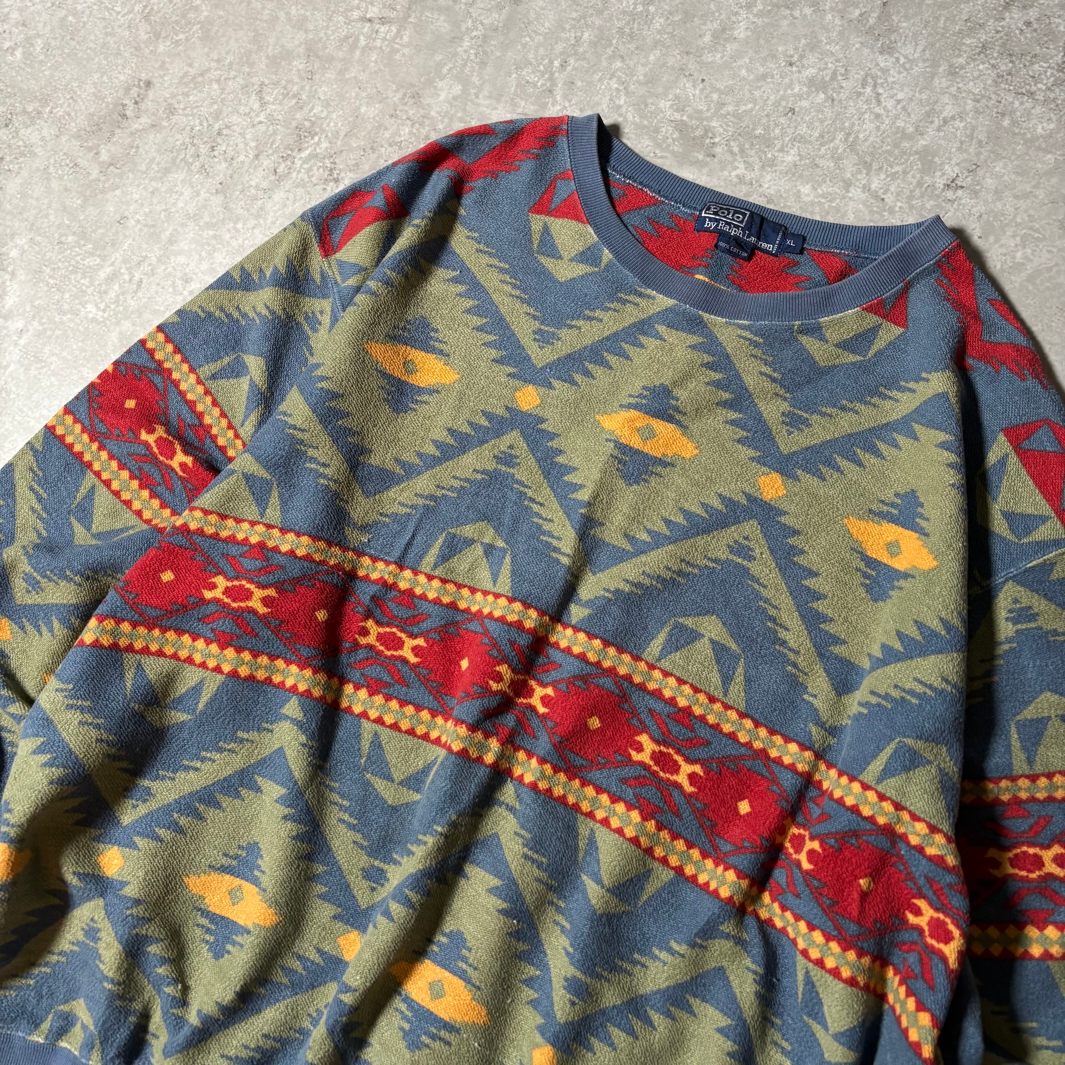 1990s “Polo by Ralph Lauren” Native Pattern Cotton Sweatshirt